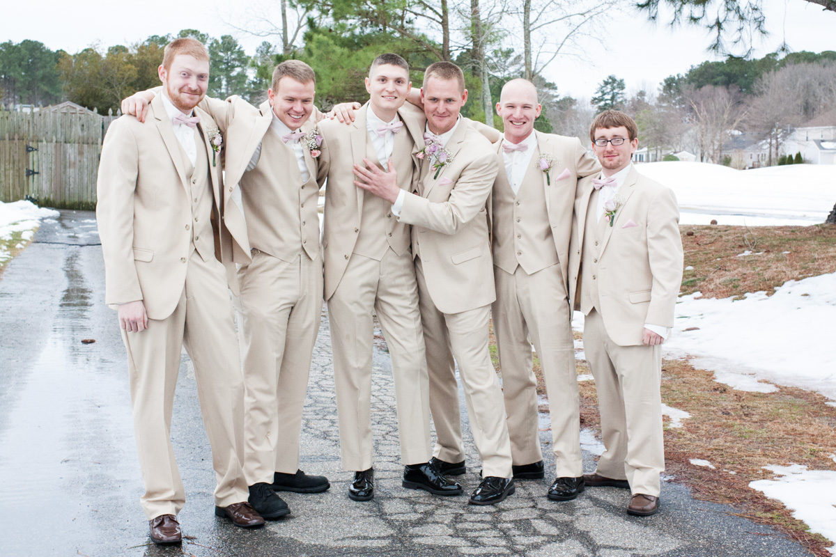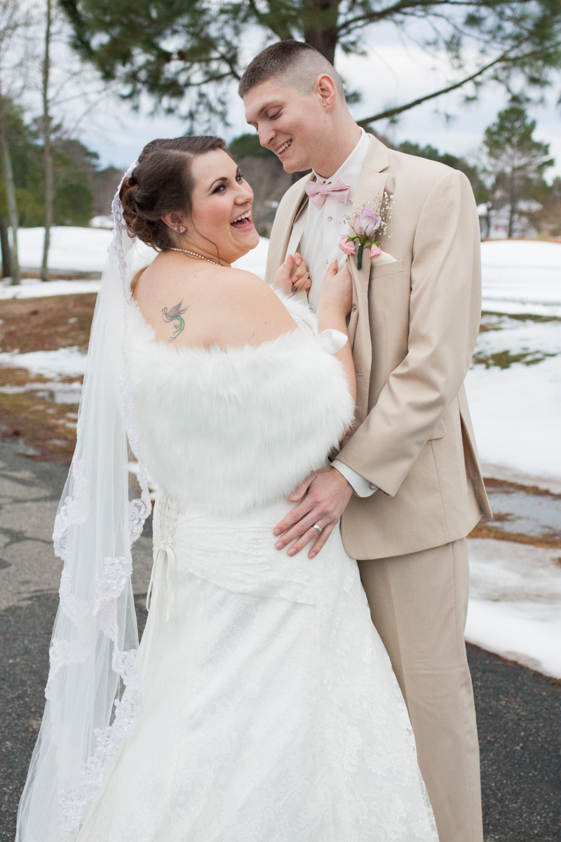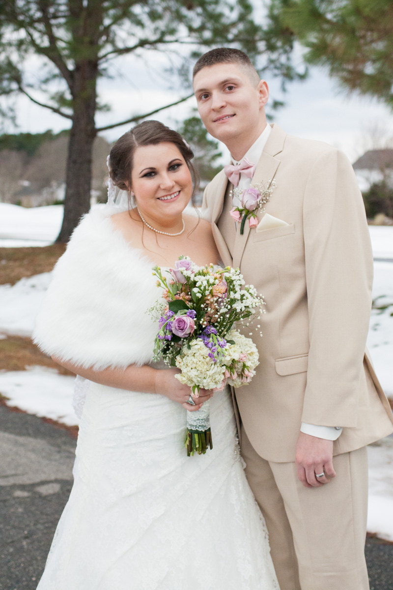 Their wedding followed early February 2014. It hardly ever snows in Chesapeake, VA, but it did right before their wedding! This made for some pretty backdrops for photos, complemented beautifully by their pink & gold tea party details. This wedding was also special because it was at Traditions, the same venue where my husband and I had our wedding reception. 🙂 Enjoy this throwback!