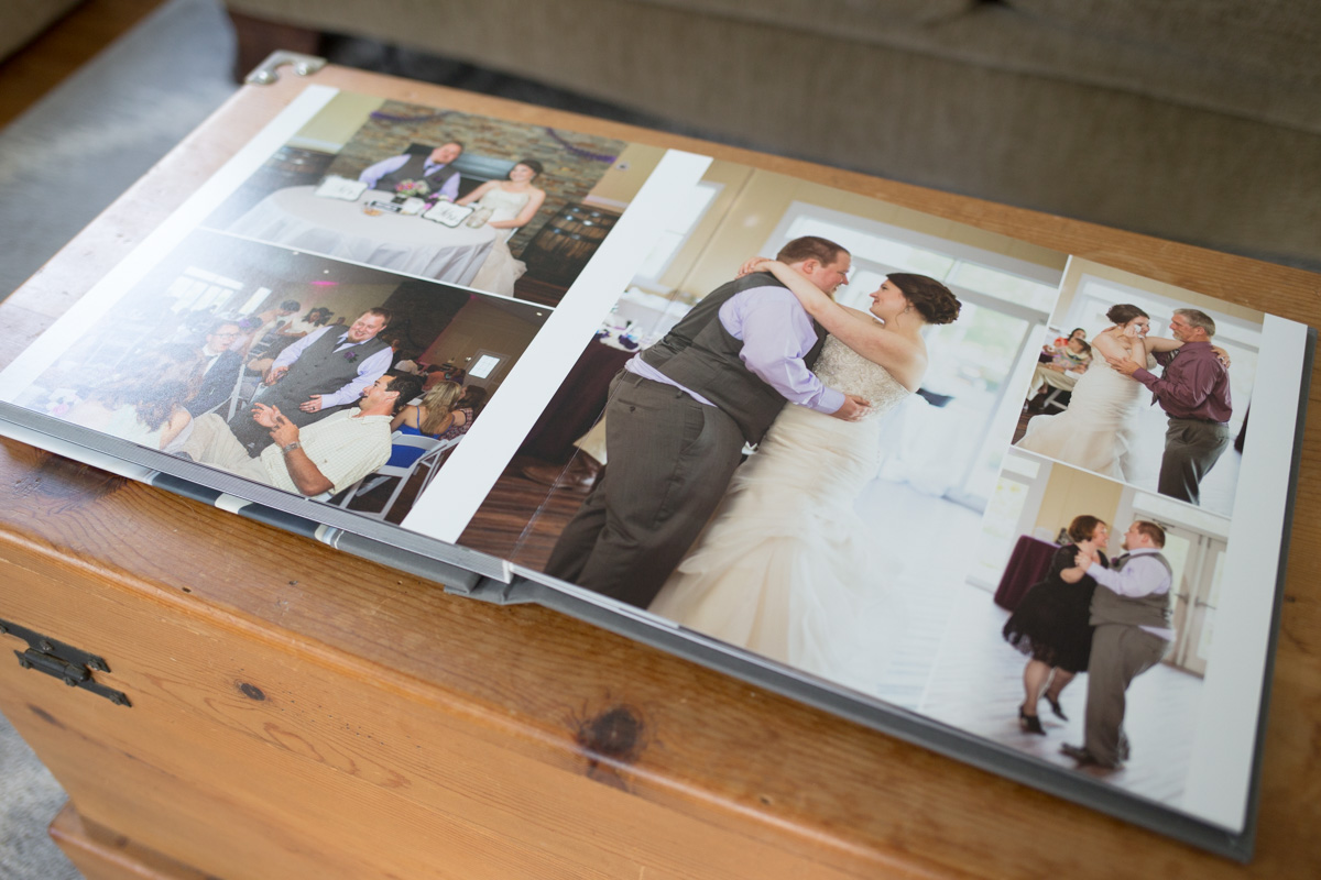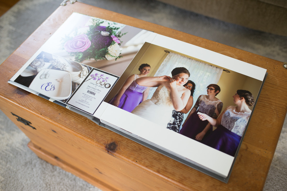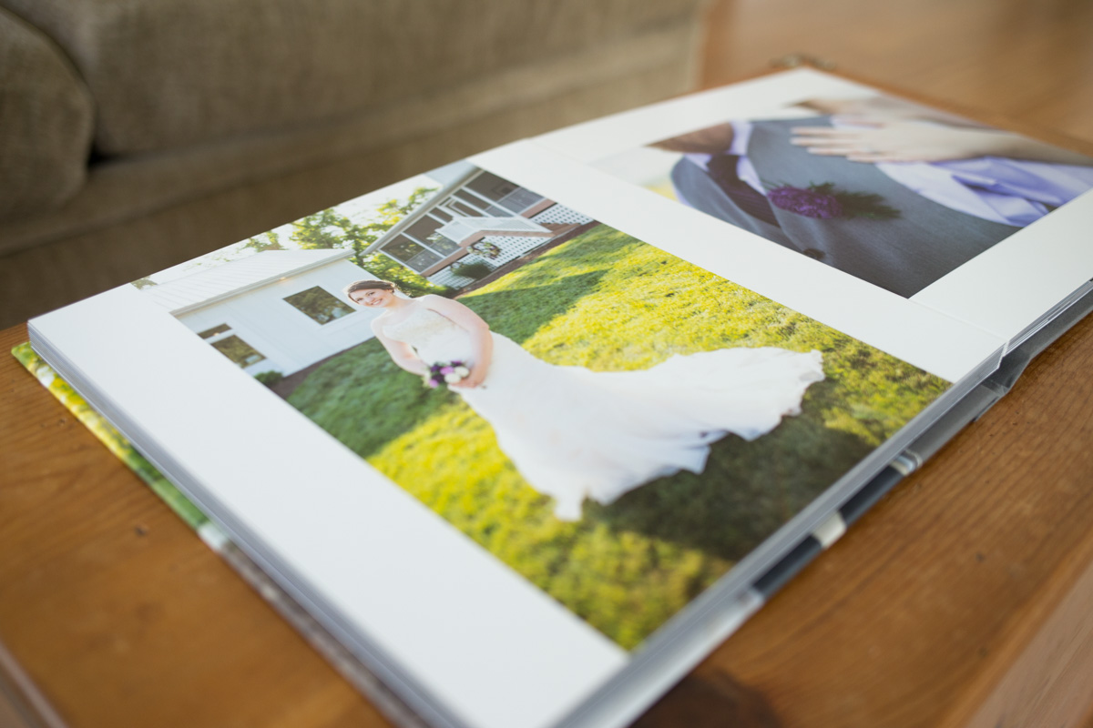 **Please note: My album offerings have been revamped! The album shown here is the Heirloom Coffee Table Album, and it’s a great option for people who want thicker pages than the Keepsake Album, and/or want to match other coffee table albums you own in size. While wedding photos are currently shown here, I’m excited to share albums with you during our consultation and ordering session featuring photos from newborn and family sessions. Weddings aren’t the only occasion to deserve a timeless heirloom photo album!