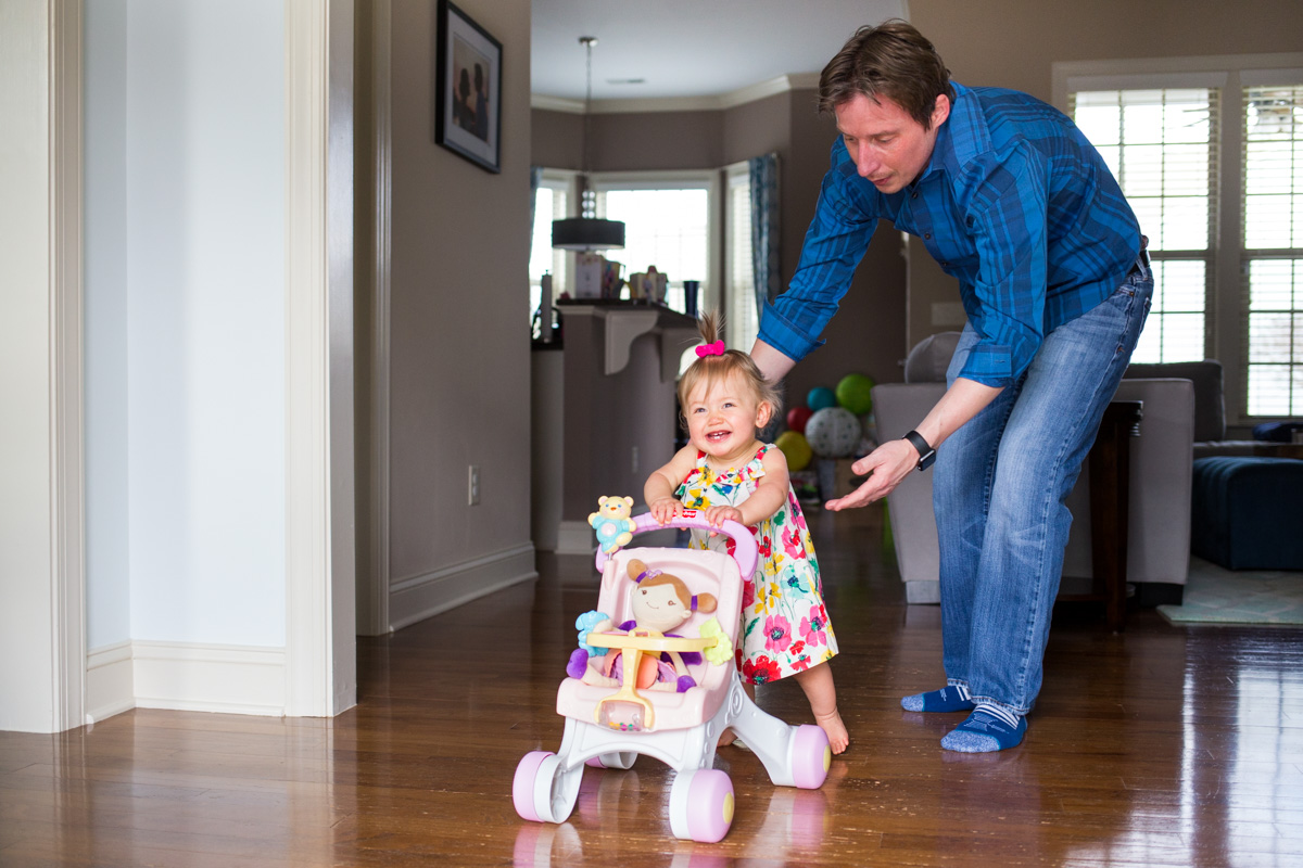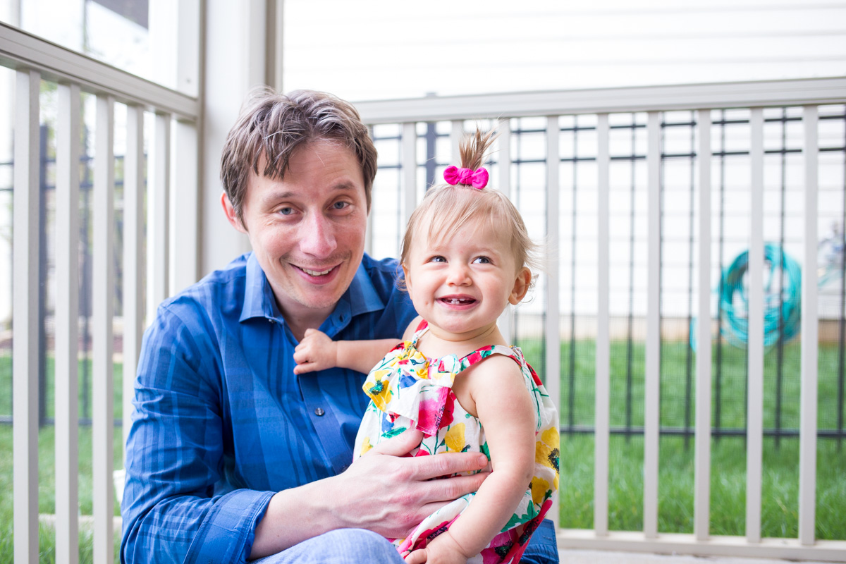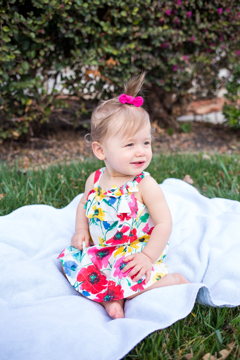 While Olivia was super cute as a newborn and adorably giggly as a 6-month-old, her 1 year session is when I really started to see her sweet personality. She shared so many proud smiles as she practiced walking and many laughs as she played with her parents! She even gave us some spit bubbles on the back porch! 🙂