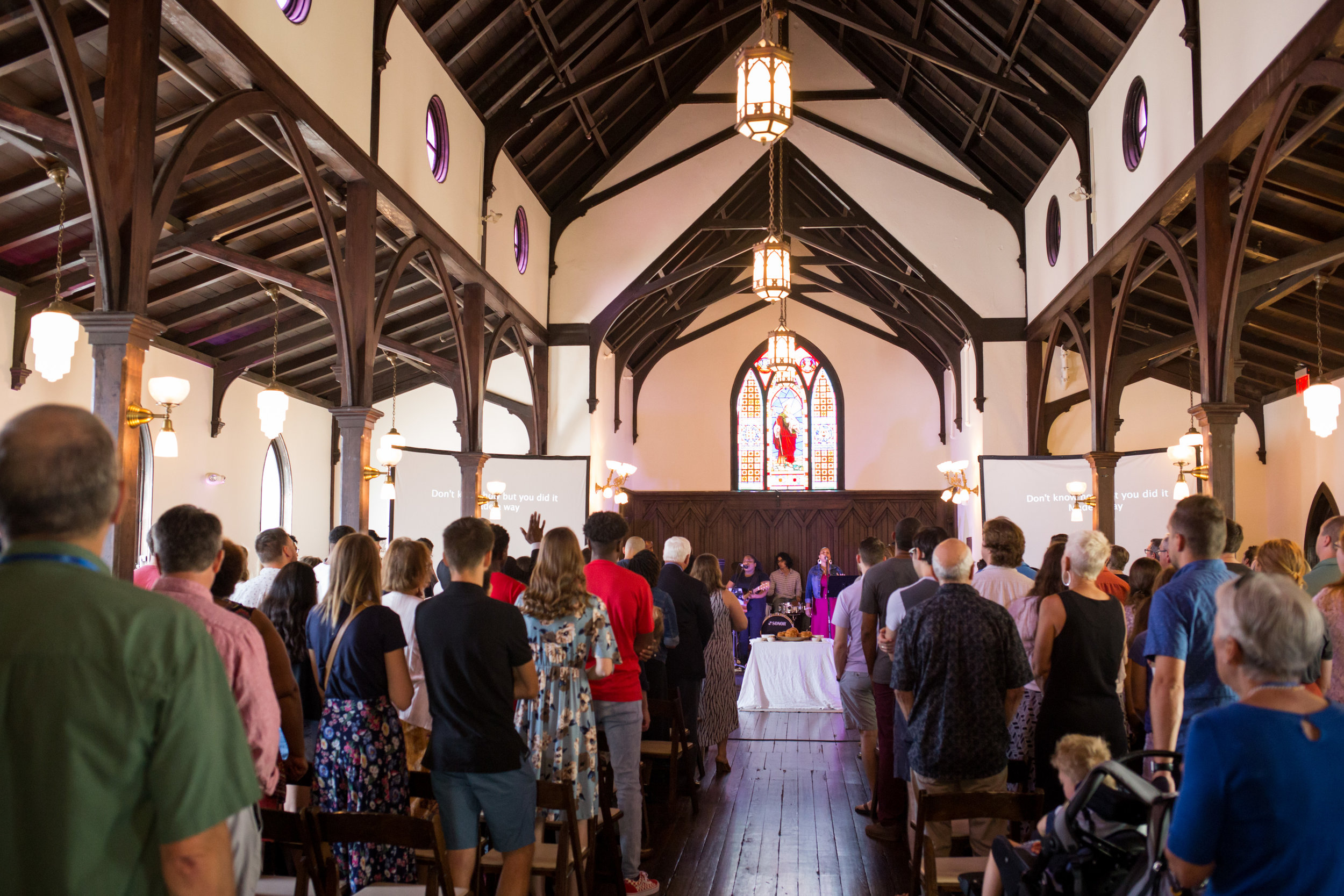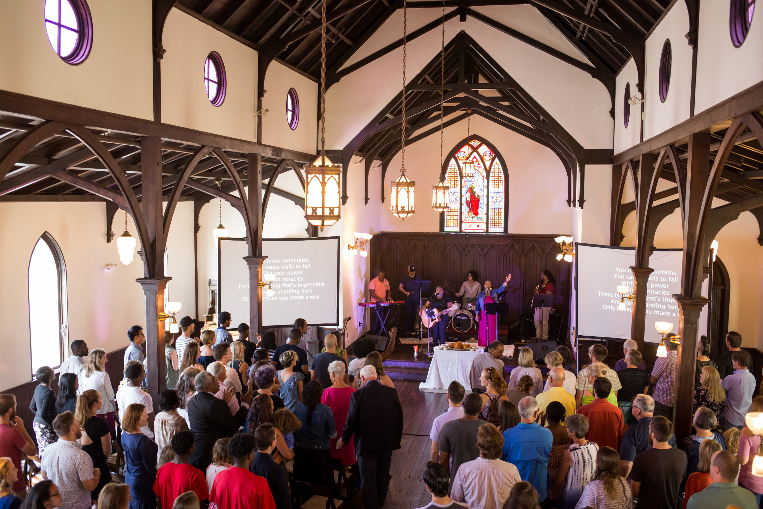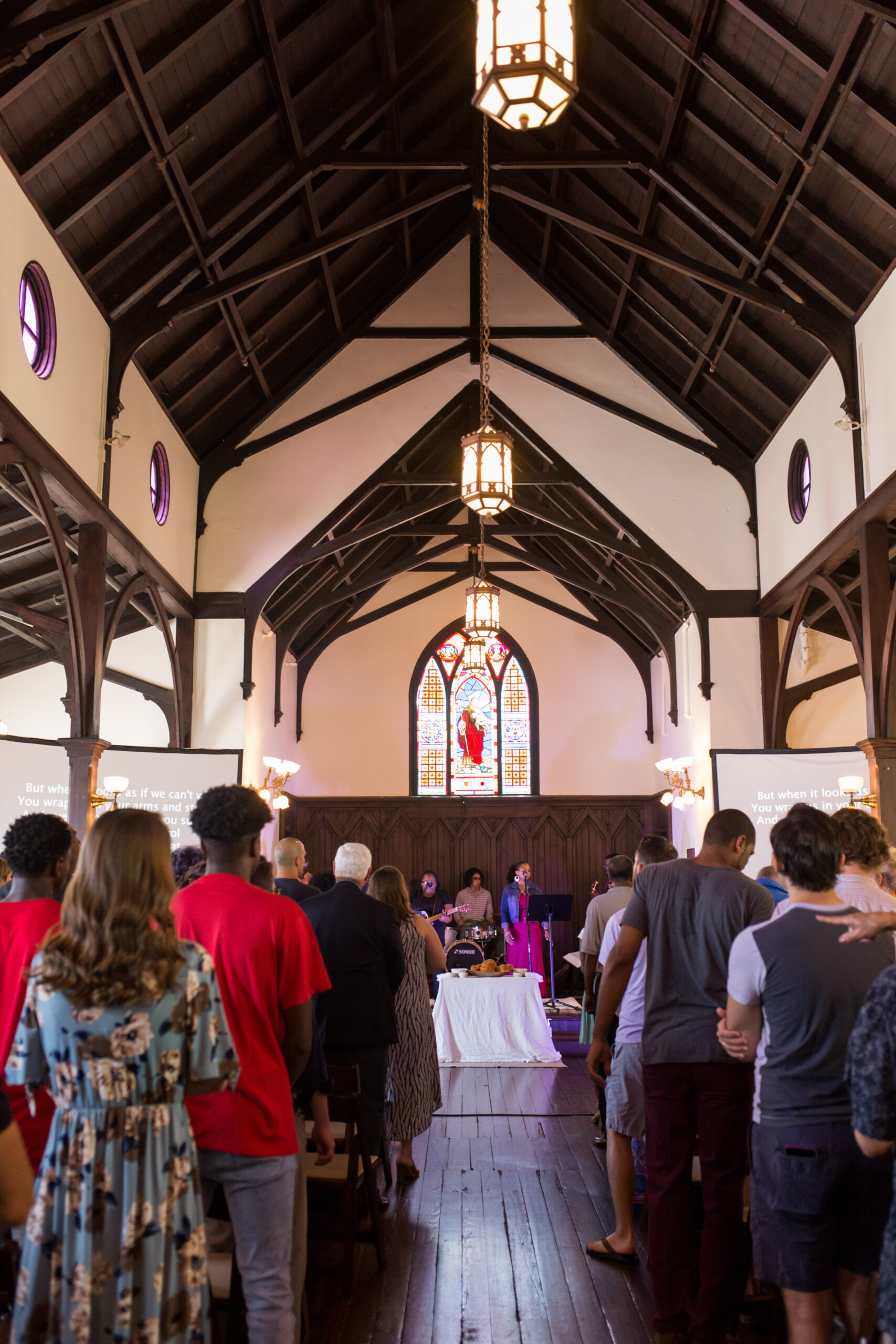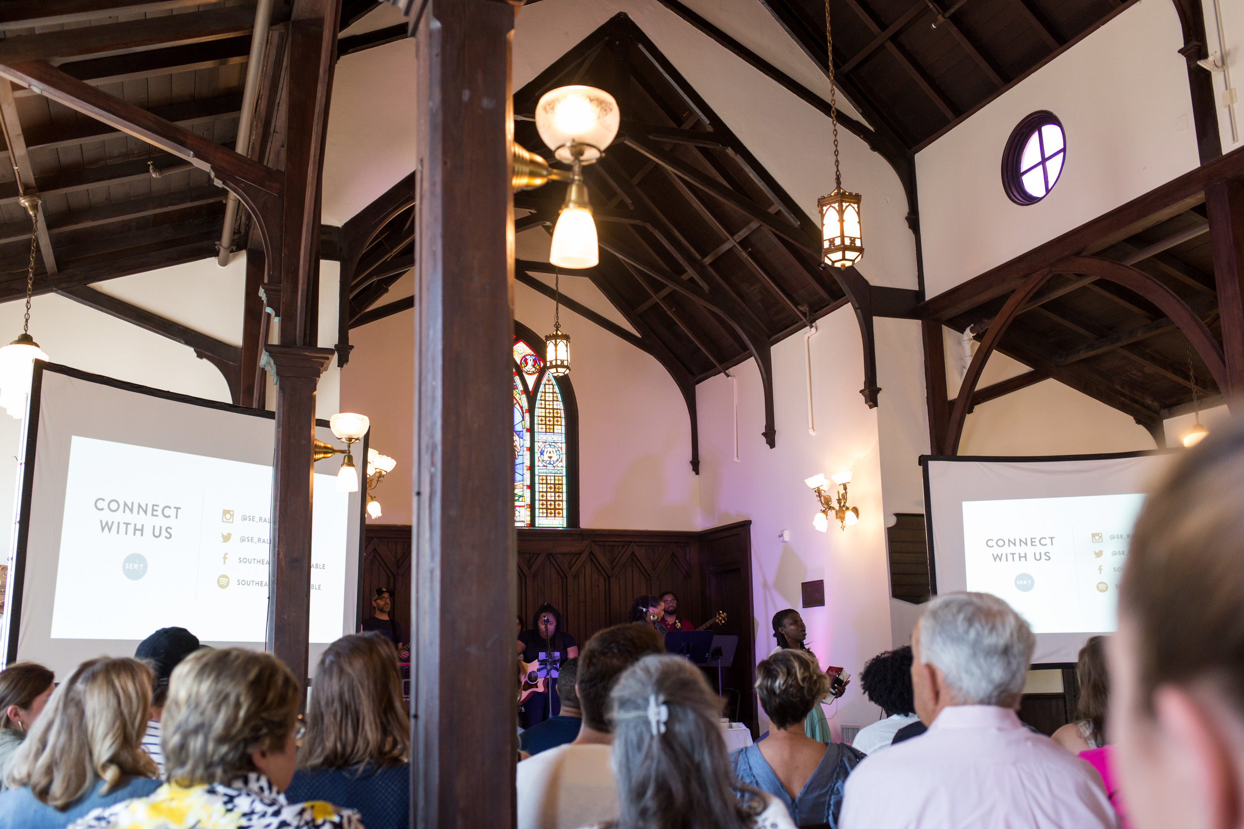 Born out of the historic Edenton Street UMC in downtown Raleigh, we exist to love on those who live in east downtown and Southeast Raleigh area. Our church leadership has been searching for a permanent location for us for quite a while – and thankfully there have been big shifts forward in that! In the meantime, we met for about 2 years in ESUMC’s youth building, and at the end of August, we transitioned to meeting at the beautiful All Saint’s Chapel on South East St. (how appropriate, as “Southeast” Raleigh Table, right?!). I was really excited about that, because I’ve checked out All Saint’s Chapel as a wedding venue, and now I get to be there every Sunday!