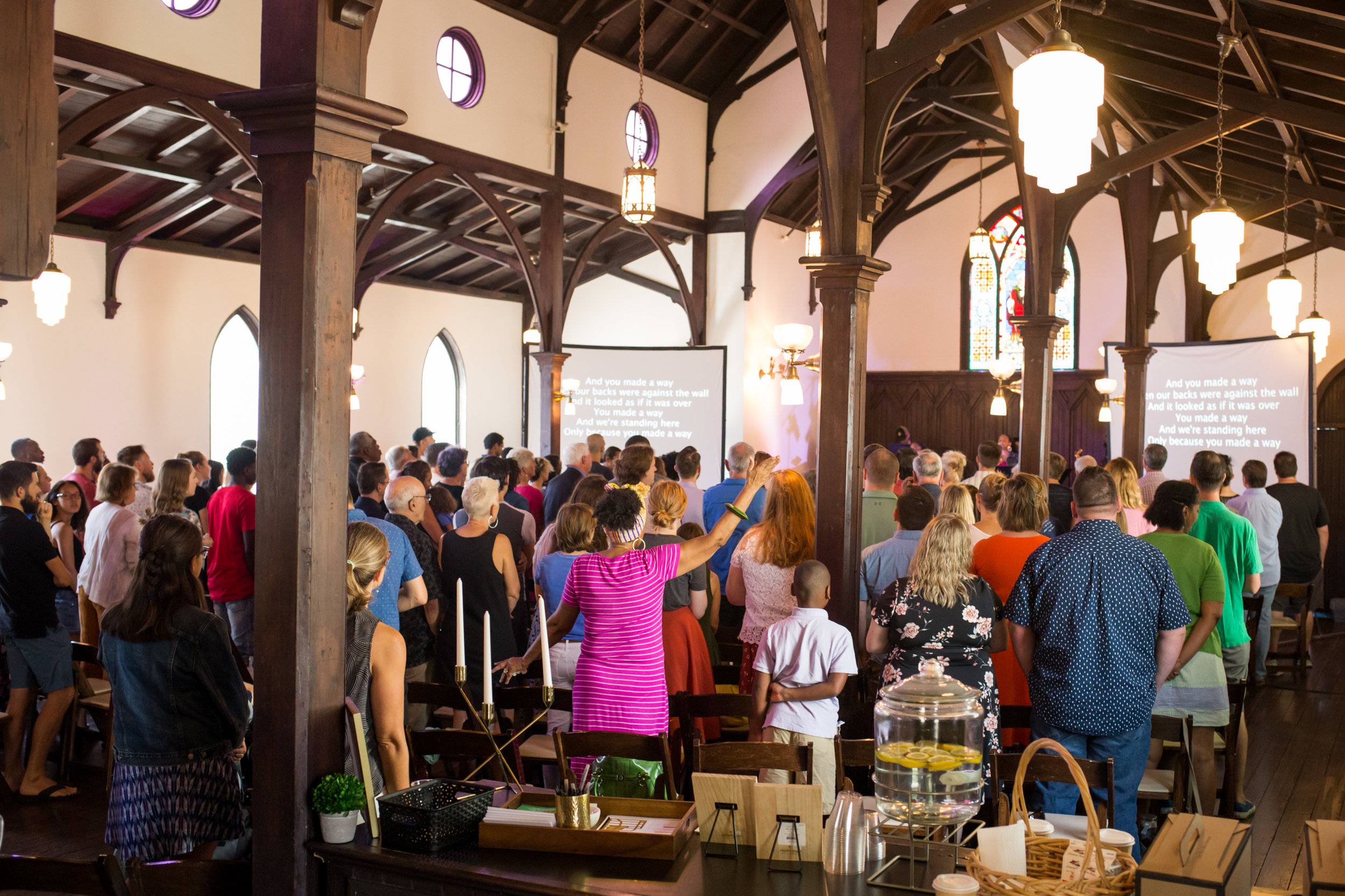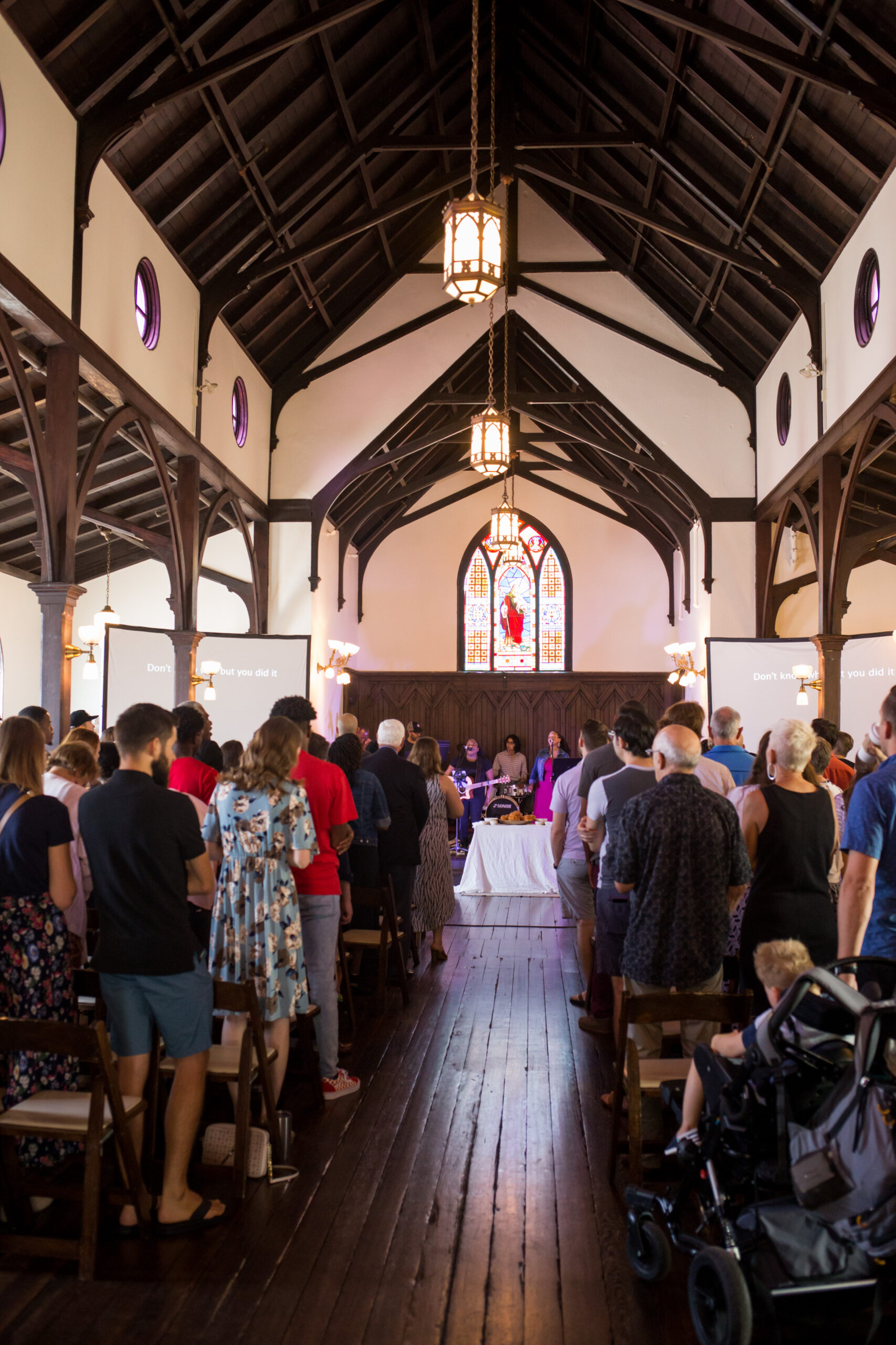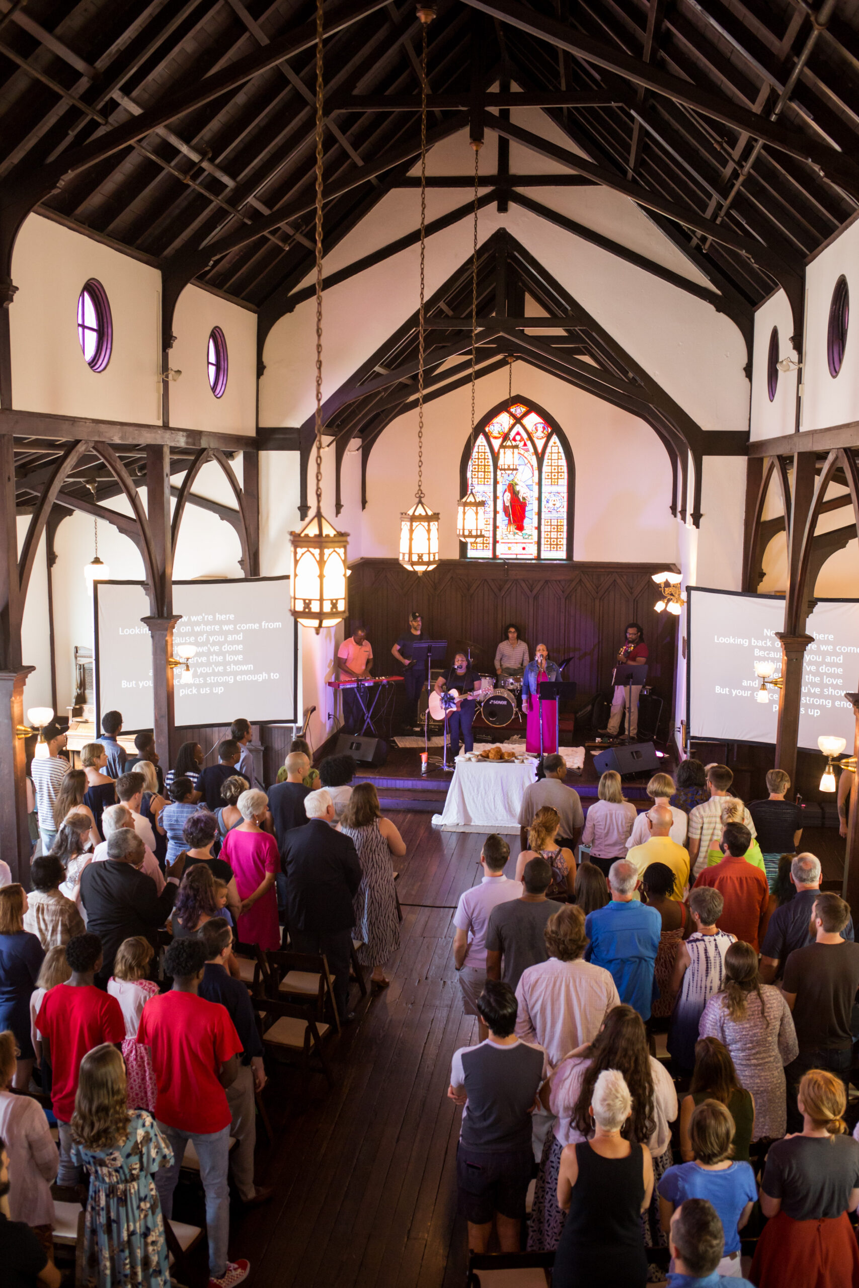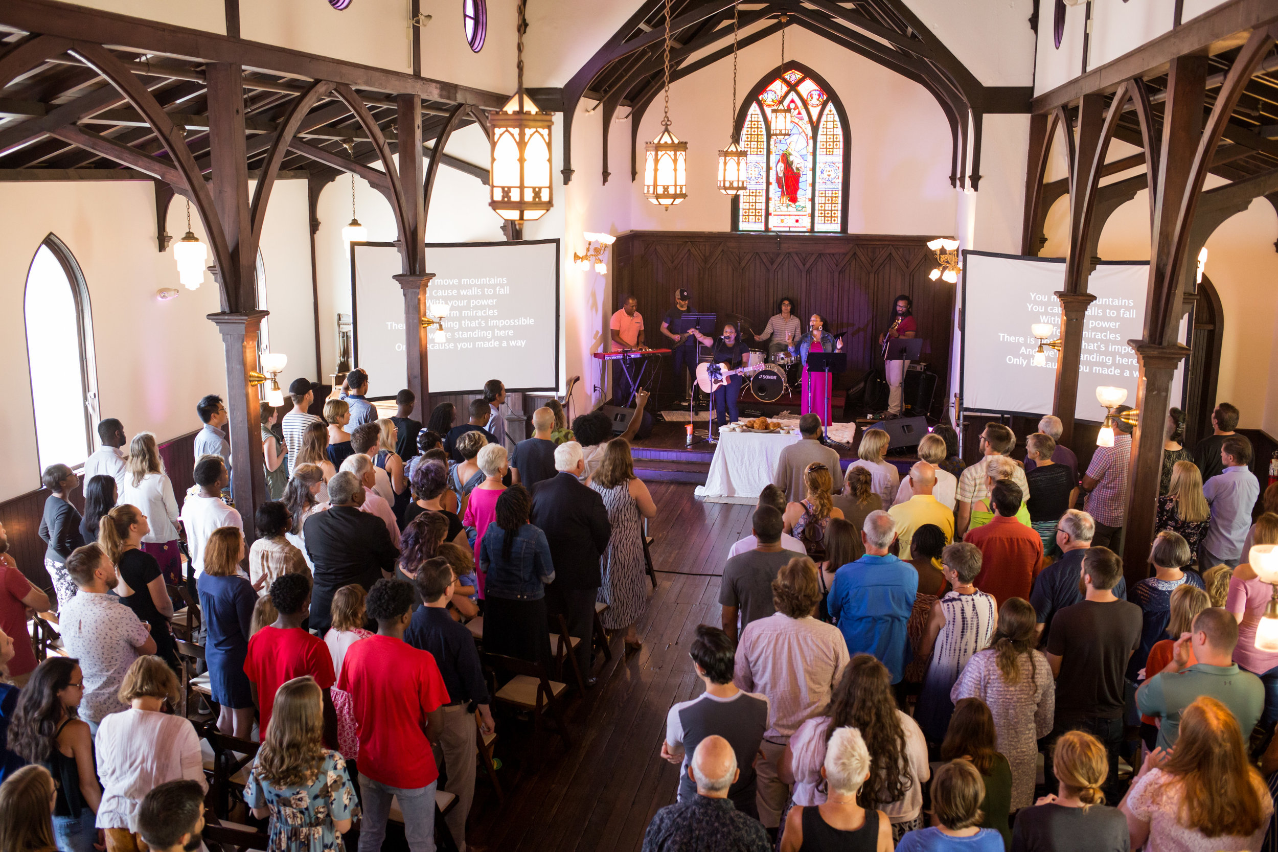 Born out of the historic Edenton Street UMC in downtown Raleigh, we exist to love on those who live in east downtown and Southeast Raleigh area. Our church leadership has been searching for a permanent location for us for quite a while – and thankfully there have been big shifts forward in that! In the meantime, we met for about 2 years in ESUMC’s youth building, and at the end of August, we transitioned to meeting at the beautiful All Saint’s Chapel on South East St. (how appropriate, as “Southeast” Raleigh Table, right?!). I was really excited about that, because I’ve checked out All Saint’s Chapel as a wedding venue, and now I get to be there every Sunday!
