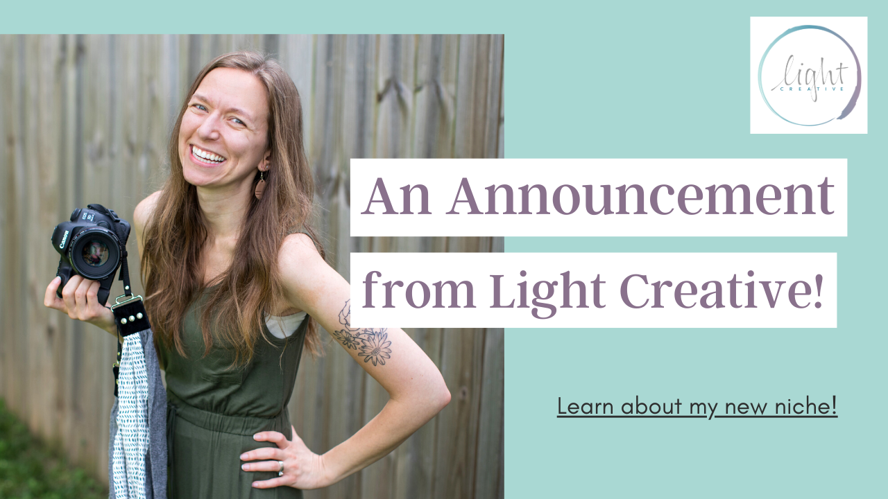 “It’s announcement time! For the first time ever in over 8 years of my photography business, I am selecting a niche and will be specializing in photography for new parents & families with little ones! Maternity sessions, newborn sessions, and sessions for families with young kids (think, toddlers & preschool-aged kids) will be my specialty, and I am so excited to grow in my service to these families and capture their precious first moments together.”