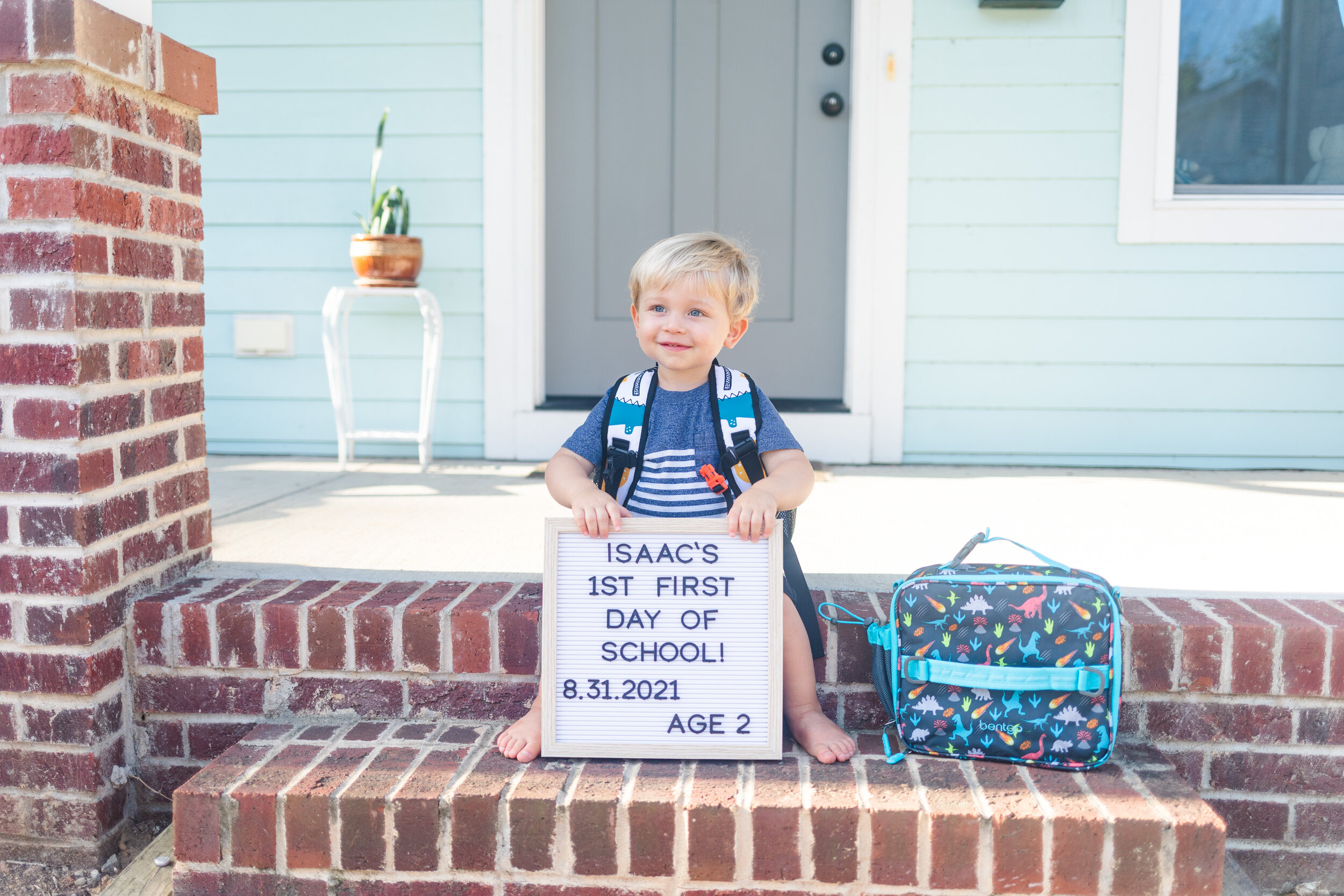 “This morning we dropped Isaac off for his first day of school EVER, and I’m over here all emotional about it, as mamas will be! We had to take those classic first day of school photos, and CAN YOU EVEN?! I also want to share some new stage of motherhood thoughts & feelings, because well, there are lots of them. I’m using this space to document, process, and share in hopes that you can relate & maybe feel a little more validated in all your own feelings & emotions as a mama with kids in transition.”